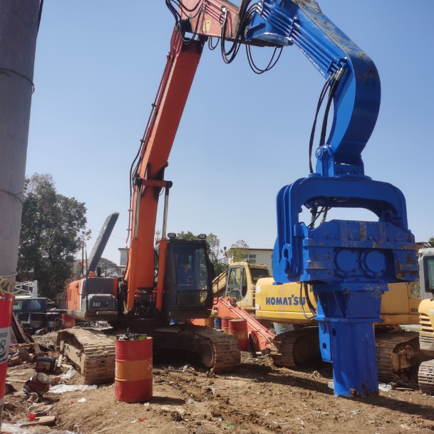 | إبراز | حفار البناء بالطاقة الشمسية المطرقة الاهتزازية المثبتة,Pv Pile Clamp Excavator Vibro Hammer,32Mpa حفارة محمولة على Vibro Hammer |