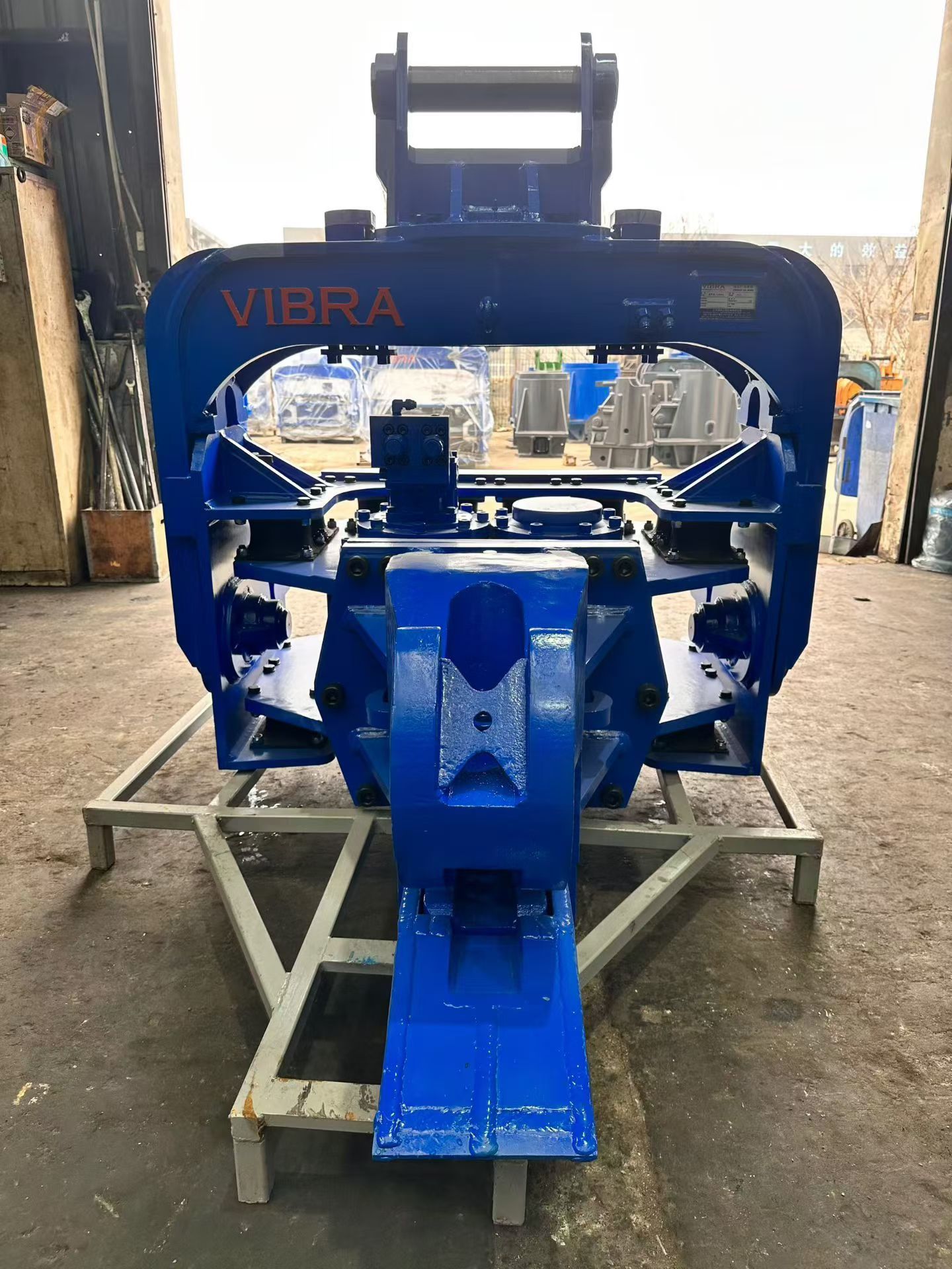 تم تجهيز المطرقة بمشبك فولاذي مصبوب فائق التحمل، يتميز بأسطوانات موسعة وقضبان توصيل مقواة. يوفر هذا قبضة آمنة للغاية على الخوازيق، مما يضمن تشغيلًا آمنًا وفعالًا حتى تحت أقصى حمل. يقلل تصميم المشبك من اللعب ويزيد من نقل الاهتزاز من المطرقة إلى الخازوق، مما يحسن كفاءة الدق في التربة الكثيفة.
